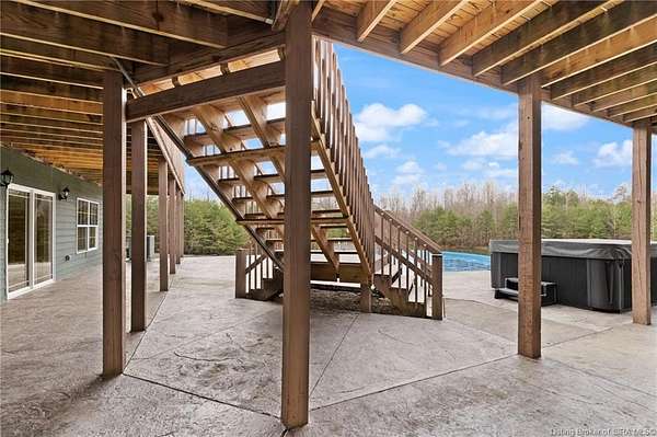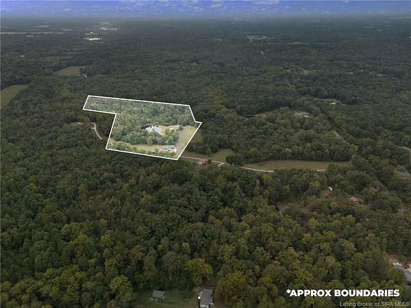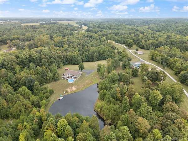 65 N to Scottsburg Exit. turn Left on 56E, continue approximately 8.1 miles and then take a slight right turn, continue for 2.8 miles and then take a right turn through the gates, continue straight pole barn and home are to the right.