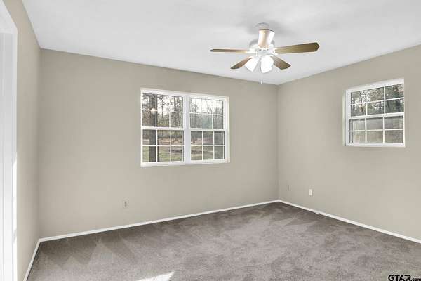 PRICE IMPROVEMENT! Take a look at this charming updated home on 4.995 Acres in Gilmer, TX and in Harmony ISD! Discover the perfect blend of comfort, privacy, and practical updates in this newly refreshed 3-bedroom, 2-bathroom home offering approximately 1,100 sq. ft. of living space. Nestled on 4.995 lightly wooded acres, this property provides room to roam while remaining convenient to Gilmer's amenities. Step inside to find a bright, inviting interior featuring fresh paint, new windows, granite kitchen counter, tongue-and-groove flooring, and new carpet. Roof is only 2 years old and there is a brand new survey on file! The home is move in ready and offers peaceful views of nature from the newly built oversized decks on both the front and back of the home. The outdoor deck space is perfect for morning coffee, outdoor dining, or simply unwinding. The acreage surrounding the home is fenced on three sides and offers a great balance of open area and shade from mature trees. A workshop and storage building provide excellent space for projects, equipment, or hobbies. Home is on community water but also features 2 shallow wells for watering livestock or keeping the landscape maintained. Whether you're seeking a quiet country retreat, a homestead, or room for outdoor recreation, this Gilmer property is a must-see!