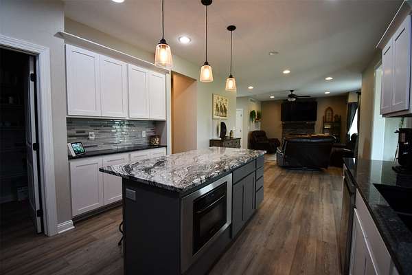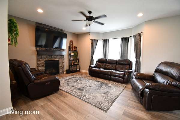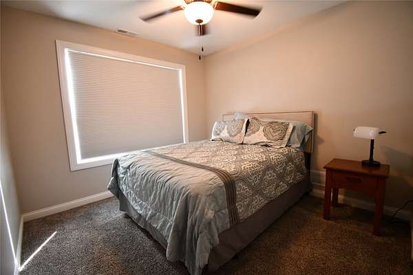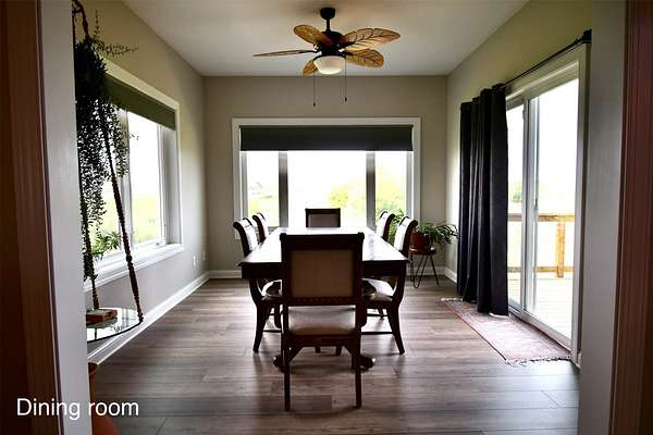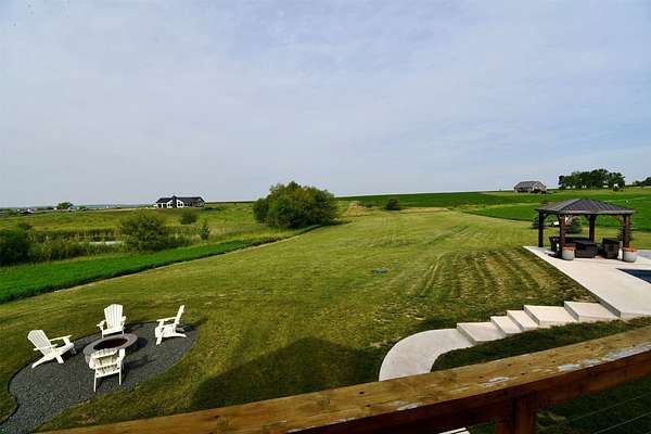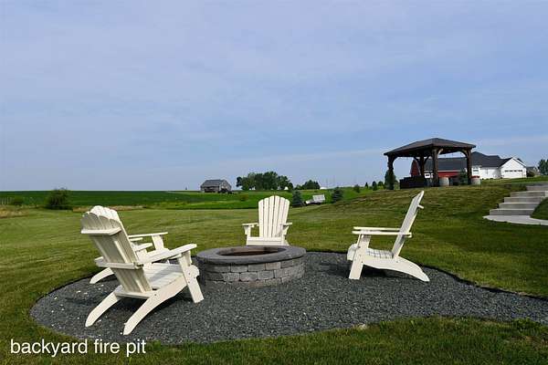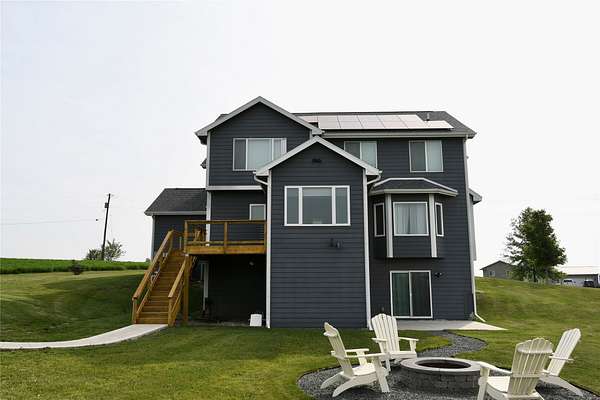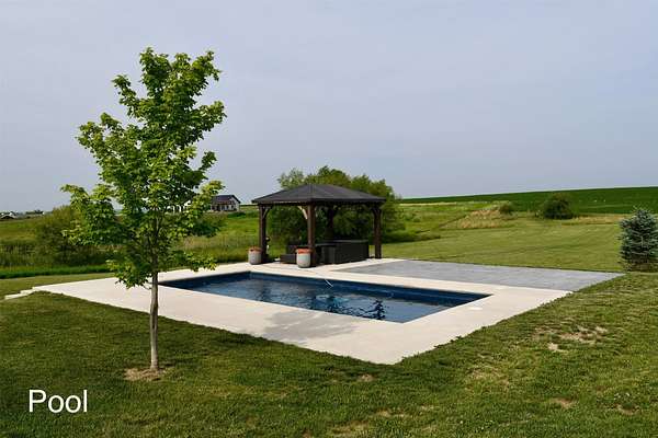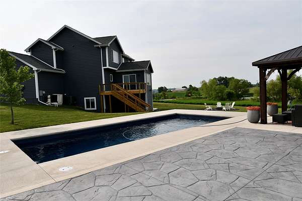 This acreage east of Indianola checks a lot of boxes: close to town, but not in town; paved road; solar panels reduce electric bill; inground, heated, 16' by 32' pool with a gondola; fire pit; Hardie plank siding, and THE VIEWS. All that before you step inside! Inside, the main level includes a kitchen with amazing granite countertops, glass linear mosaic tile backsplash, and a huge pantry. A living room with a tastefully created stone fireplace, a powder room, and an amazing sunroom give plenty of additional elbow room on this level. The upstairs offers a spacious master suite that includes a garden style tile shower, sizable walk-in closet and dual vanities with lots of counter space, the laundry room, and three other bedrooms around a full bath also with dual vanities. The walkout lower level includes a fifth bedroom, another full bathroom, a large family room, and a bonus room under the sunroom.