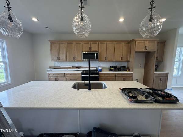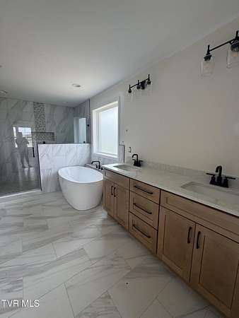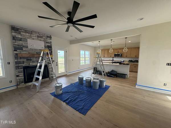 Stunning new construction offering over 3,500 finished square feet, perfectly situated on a sprawling 1.5-acre lot in desirable Blountville! This beautifully designed 4 bedroom, 4 bath, and 3 living space home showcases an open floor plan filled with upscale finishes and thoughtful details throughout. Step inside to an inviting foyer that flows seamlessly into the formal dining room, highlighted by craftsman-style wainscoting. The spacious living room is filled with natural light and features gleaming hardwood floors, a custom stone fireplace, and an open layout ideal for entertaining. The chef's kitchen is a true showstopper, boasting shaker-style cabinetry with soft-close doors and drawers, quartz countertops, a tiled backsplash, stainless steel appliances, and an oversized 8-foot island perfect for gathering. A main-level bedroom or office, along with a full bath just steps away, offers flexibility for guests or work-from-home needs. Upstairs, you'll find a generous 15x16 bonus living area--perfect for a media room, playroom, or additional family space. The luxurious primary suite is a private retreat, complete with hardwood flooring, a stylish accent wall, dual vanities, a custom 7-foot tiled walk-in shower, a freestanding soaking tub, and a large walk-in closet with laminate shelving. Two additional bedrooms, each with walk-in closets, and a conveniently located laundry room complete the upper level. The partially finished basement adds an additinal 800+ sq ft of living with a spacious den/family room and a fourth full bathroom, plus unfinished areas ideal for storage or future expansion. Relax and unwind on the covered back patio overlooking the expansive backyard, or enjoy peaceful views from the covered deck. Home includes natural gas service for HVAC, range, fireplace, and a tankless water heater--all reflecting quality craftsmanship at every turn. Located in an exclusive new community with large lots in Blountville, this home offers the perfect blend of modern luxury and serene countryside living. All information deemed reliable but subject to buyer verification. Estimated completion: May 2026. Septic is permitted for a 3BR