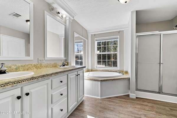 - Ceiling Fan(s), Kitchen Island, Open Floorplan, Primary Bathroom -Tub With Separate Shower, Split Bedrooms, Walk-In Closet(s)