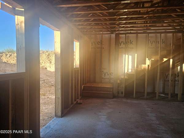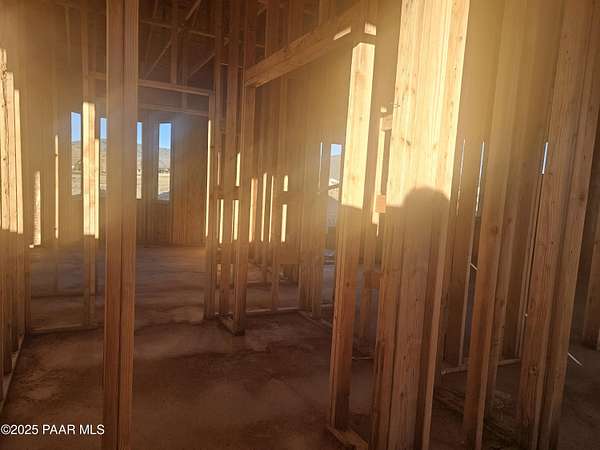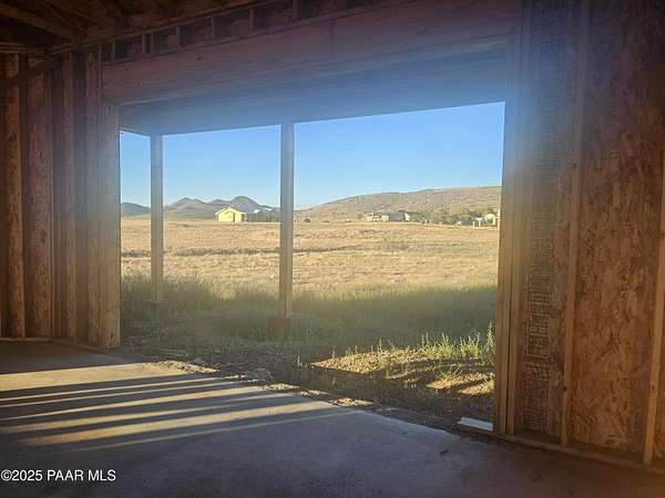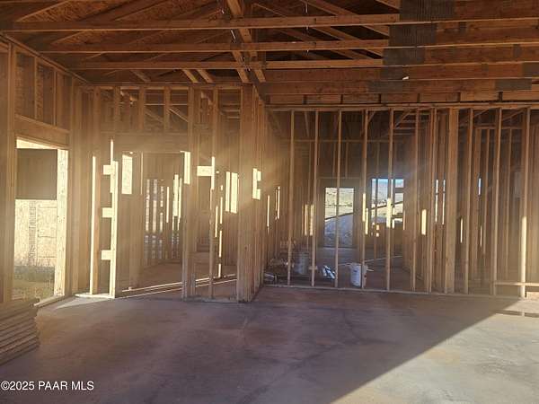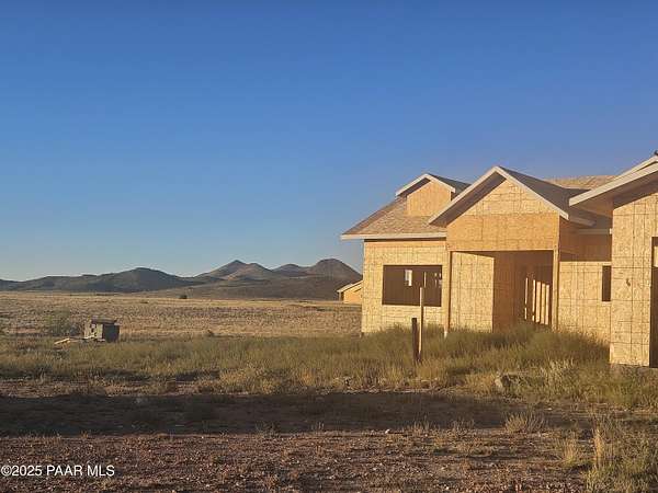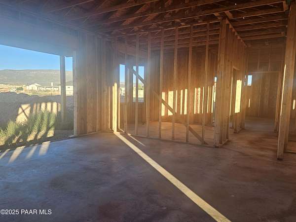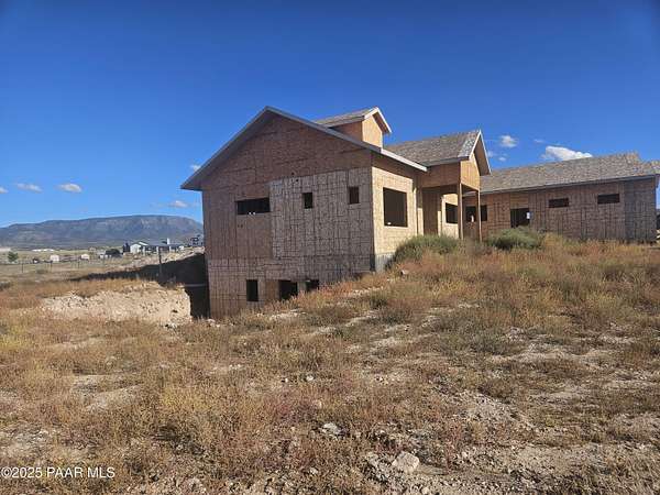 Framing up on this handsome 3-bedroom partially completed home with a walk-out for extra living quarters. Designed for covered & open rear decks capturing the long views of Mummy Mountain, the Bradshaws & Granite Mountain. Spacious rooms in this open concept layout with split-bedroom arrangement. Three-car garage & plenty of room for RV & toys. Adjacent North parcel (APN 401-01-367B) available for sale @ $75K. Working drawings for completion of home included. Take a look for yourself ~ home is about 38% complete, no well, septic installed, but not inspected. Bring your builder to complete or maybe you're a contractor? Just don't miss this unique opportunity!