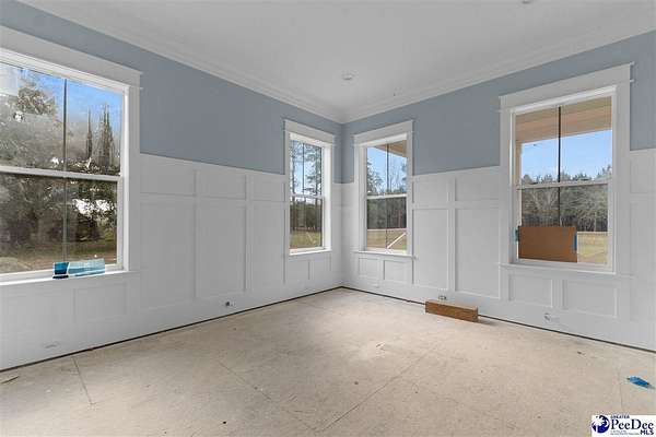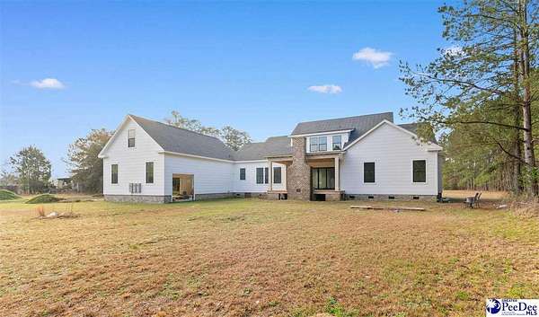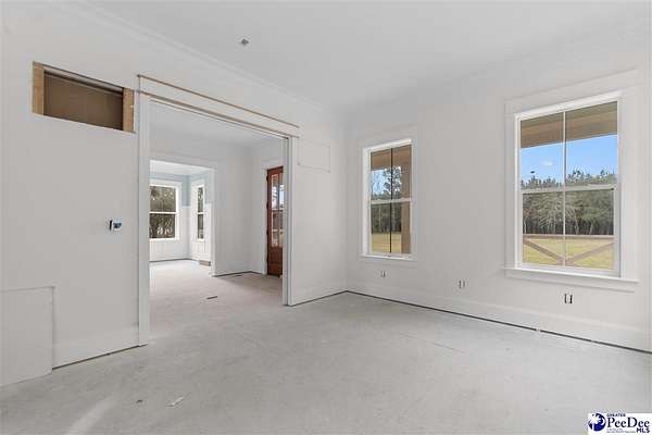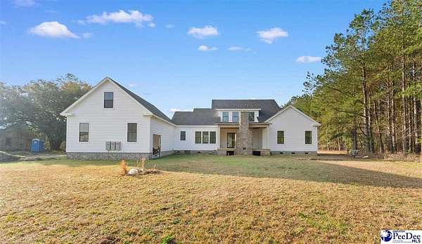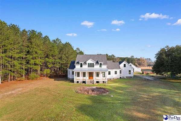 Nearly completed modern farmhouse on 3 acres in a peaceful rural setting just outside Florence. The home’s design is based on a popular Low Country architectural style, blending timeless farmhouse character with modern living. Enjoy quiet mornings and relaxing evenings from the spacious front porch, perfect for taking in the scenic countryside. The covered back porch with fireplace offers a welcoming space for entertaining or unwinding. Situated on 3 beautiful acres, the property also features both an attached garage and a detached shop/barn, providing excellent storage, workspace, or hobby potential. Plans currently include a media room, which could easily be customized or converted to fit the buyer’s needs while construction is still underway. Located in a low-traffic countryside setting while still being just minutes from shopping, dining, and medical facilities in Florence. Originally planned as the owner's dream home, now creates a rare opportunity for a new owner to complete and enjoy this exceptional property.