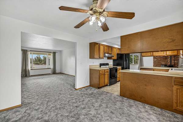 NEW PRICE! Experience the best of Central Oregon with this tranquil, 5 acre property+irrigation rights, offering a private retreat without sacrificing local convenience. In urban holding, this home is neat-as-a-pin & features a spacious living room area+separate family room with pellet stove & brick hearth providing a cozy atmosphere. Roomy feel throughout. Located on the northwestern outskirts of Redmond, the property provides breathing room that's quiet, peaceful, and animal-friendly with surroundings that benefit the territorial views. 36x48 tidy shop is insulated with 12x36 built-in loft! The setting combines country-style living with easy access to city amenities, and neighbors appreciate the friendly atmosphere. You have a unique opportunity if you're seeking privacy, space & more rural feel, all within reach of a growing and vibrant community. Enjoy a quick drive to Redmond's historic downtown, local businesses, restaurants, and breweries. Ready to be your forever home!