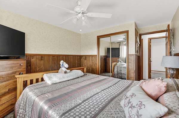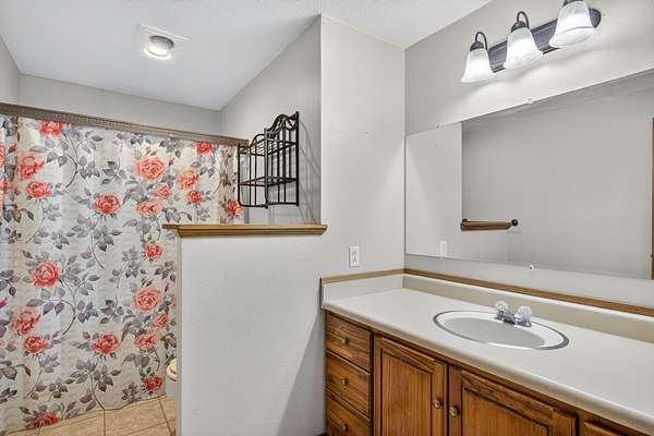 - Breakfast Bar, Ceiling Fan(s), Fiberglass Stall Shower, Laminate Counters, Linen Closet, Primary Downstairs, Shower/Tub Combo