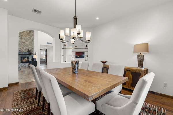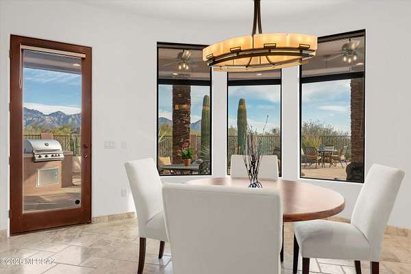 Nestled in guard-gated Stone Canyon, famed for its exclusive scenic desert golf course, this residence captivates from the very moment you step through the door. Soaring ceilings and expansive glass walls frame the majestic Catalina Mountain views. The elegant split layout features timeless travertine and wood flooring, wine bar and stacked stone fireplace. The grand primary suite offers a private retreat with a patio and stunning views. A chef's dream, the kitchen boasts a large island, professional SS appliances, 48'' gas cooktop, expansive breakfast bar and walk-in pantry. Backing to natural desert, the backyard is an entertainer's oasis with grand covered patio, built-in BBQ, sparkling pool & spa. Just minutes from the clubhouse & fitness center, this is the pinnacle of luxury living.