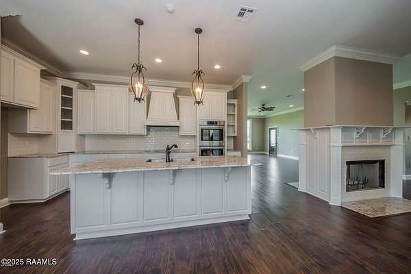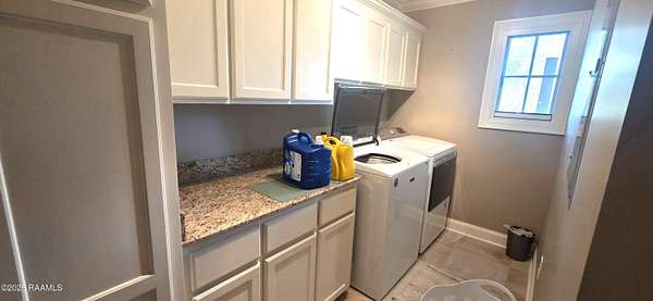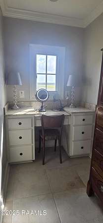 - 9+ ft Ceiling, Attic Access, Cathedral Ceiling, Crown Molding, Double Vanity, Electric Dryer Con, Electric Stove Con, Electric Washer Con, Garden Tub, Kitchen Island, Primary Bath, Separate Shower, Varied Ceiling Heights, Walk-In Closet(s)