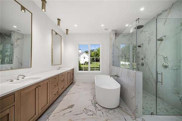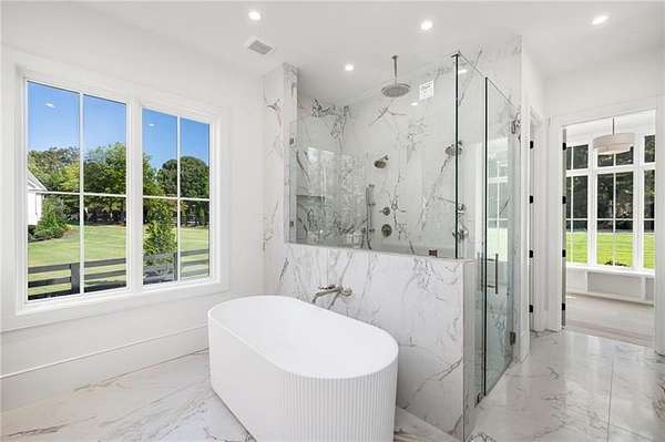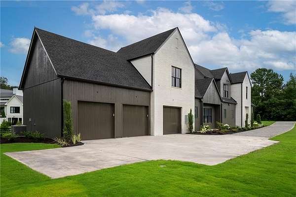 NEW CONSTRUCTION MODERN FARMHOUSE JUST MINUTES SOUTH OF CRABAPPLE MARKET. LOCATED IN TOP SCHOOLS AND BROOKFIELD COUNTRY CLUB COMMUNITY. This home offers what everyone in today's market is seeking- detailed finishes, walls of windows, soaring ceilings, stunning kitchen set on a 1.6+/- acre lot with private wooded views behind, on grade patio, yard and outdoor living space on main. 3 car garage with pass-through garage door. Gorgeous double door entry with 2-story fireside living space overlooked by the home's gourmet chef's kitchen featuring stone countertops, butler's pantry and walk in pantry. Living spaces open to a covered patio with fireplace, pool bathroom and walk out yard. Owner suite wing on main with large luxury bath and walk-in closets. As well as an additional bedroom or study on the main level. Upper level of home hosts three large bedroom suites as well as bonus room space above the garages with access from a back staircase. Home comes with full low voltage wiring. Option to join Brookfield Country Club (golf, 10 tennis court, 6 lane junior Olympic size pool with diving board and waterslide, restaurant, clubhouse and state-of-the-art fitness center). Prime location 5 minutes south of Downtown Milton/Crabapple, Less than 10 minutes to Downtown Roswell, and less than 15 minutes to Downtown Alpharetta and Avalon. Builder offering optional upgrades or pool option, warranty and great client relationships. Pool renderings photos 53, 54 and 58.