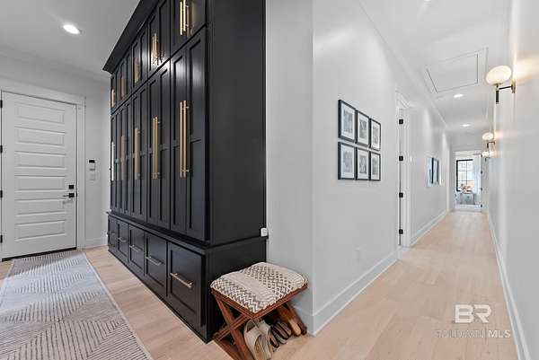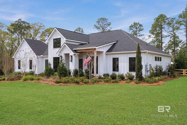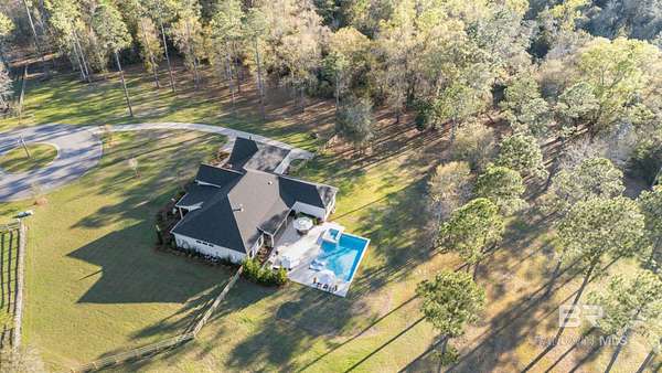 Tucked away on 10 private acres in Fairhope, this Gold Fortified 2022 custom estate by McElmurray Homes offers a rare blend of luxury, seclusion, and timeless design. With approximately 4 acres of protected wetlands and winding nature trails, the setting feels worlds away—quiet, peaceful, and entirely your own. Spanning 3,149 square feet, this 4 bedroom, 3.5 bath residence with a dedicated office was thoughtfully designed with elevated finishes throughout. Engineered hardwood floors, Anderson windows with custom blackout roller shades, and carefully curated details create an interior that is both refined and inviting. The kitchen is as impressive as it is functional, anchored by a Subzero refrigerator, Bertazzoni 6-burner gas range with double ovens, quartz countertops, and a striking Charles Phillips pantry door with electrical access inside. Designed for seamless entertaining and everyday living, the spaces transition effortlessly. The primary suite serves as a true retreat, featuring dual vanities with extended counter space and makeup area, soaking tub, separate walk-in shower, and an oversized walk-in closet. Bedrooms 2 and 3 share a Jack and Jill bath, and Bedroom 4 offers its own private ensuite. Outdoors, the estate unfolds into a resort-style setting with a heated saltwater gunite pool installed by Blue Haven Pools, an 8x8 hot tub, French pattern travertine decking, gas firepit, and gas line ready for a future outdoor kitchen. Well irrigation supports the grounds, and a recently installed field fence frames the property beautifully, enhancing both privacy and presence. Complete with a tankless water heater, WaterDrop filtration system, custom built-in storage off the garage, and fortified construction, this is a residence built for lasting quality and distinction. Due to the private estate setting, proof of funds or lender pre-approval is required prior to confirmed showings. A private estate experience—just minutes from town, yet entirely set apart. Buye