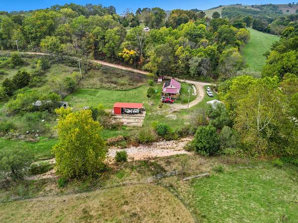 Ozarks Homestead with Solar Power, Creek Frontage & NO RESTRICTIONS!This charming Ozarks farm home has it all -- solar power, creek frontage, modern updates, reliable connectivity, and NO RESTRICTIONS -- on just over 3 acres! Enjoy Little Beaver Creek, rolling hills, and some of the best views in the county.The lodge-inspired interior features rustic reclaimed touches including an original barn door, tin roof accents, custom cedar cabinetry, and live-edge walnut countertops. The floor plan offers 2 main-level bedrooms, a primary suite with walk-in closet, plus a versatile loft for a 3rd bedroom, office, or craft space. A mudroom adds laundry and storage functionality for homestead living. Energy Efficiency:7KW Solar Panel System (avg. $30/month electric)Whole-house surge protection & transfer switchUpdated HVAC (2022)Modern underground electric service Exterior & Utilities:NEW RV Carport with 10x15 locking shed & 20/30/50 amp power post3-bay garage/machine shedSmall barn with paddock & squeeze chuteGreenhouse (parts included)Automatic tire waterer, garden beds, and established asparagus patchLarge covered deck with panoramic views8' carved bear statueCell Phone Booster & Fiber Internet -- stay connected in the country!This property blends Ozarks charm, modern solar efficiency, and complete freedom. Perfect for homesteading, raising animals, or private country living. Don't miss this one-of-a-kind, unrestricted Ozarks dream home!