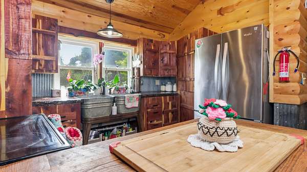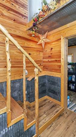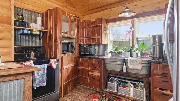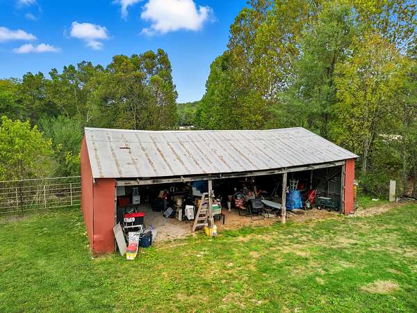 Ozarks Homestead with Solar Power, Creek Frontage & NO RESTRICTIONS! This charming Ozarks farm home has it all -- solarpower, creek frontage, modern updates, reliable connectivity, and NO RESTRICTIONS -- on just over 3 acres! Enjoy Little Beaver Creek, rolling hills, andsome of the best views in the county. The lodge-inspired interior features rustic reclaimed touches including an original barn door, tin roof accents, customcedar cabinetry, and live-edge walnut countertops. The floor plan offers 2 main-level bedrooms, a primary suite with walk-in closet, plus a versatile loft for a3rd bedroom, office, or craft space. A mudroom adds laundry and storage functionality for homestead living. Energy Efficiency: 7KW Solar Panel System(avg. $30/month electric) Whole-house surge protection & transfer switch Updated HVAC (2022) Modern underground electric service Exterior &Utilities: NEW RV Carport with 10x15 locking shed & 20/30/50 amp power post 3-bay garage/machine shed Small barn with paddock & squeeze chuteGreenhouse (parts included) Automatic tire waterer, garden beds, and established asparagus patch Large covered deck with panoramic views 8' carvedbear statue Cell Phone Booster & Fiber Internet -- stay connected in the country! This property blends Ozarks charm, modern solar efficiency, andcomplete freedom. Perfect for homesteading, raising animals, or private country living.