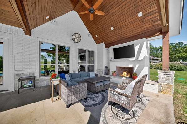 Welcome to your private retreat conveniently located just 5 minutes from Fresh and walking distance to Tyler Racquet Club! This stunning property offers the best of both worlds.. peaceful country living with modern amenities sitting on 2.134 fully fenced acres with a private gated entrance. Discover a rare find with this property featuring an ADDITIONAL 600 sq. ft. (not included in the main home 2883 sq ft) fully built-out bonus space/MIL suite complete with its own full bathroom and thermostat making it perfect for guests, extended family, or a private retreat. Step inside the main home to an open-concept layout with soaring vaulted ceilings featuring beautiful wood beams and a wall of windows across the back, perfectly framing the backyard oasis. The spacious kitchen is laid out so functional, featuring a farmhouse sink overlooking the backyard, a gas stove with a built in pot filler, double ovens, microwave, a prep sink, abundant counter space, a large walk in pantry, and a seamless flow into the living and dining areas. Off the kitchen you will find a full bath that also doubles as a pool bath with access to the patio. The primary suite is a true escape with large windows, vaulted ceilings, hardwired fixtures over the nightstands and a view and private access to the backyard. The primary bath will wow you with two separate vanities, storage, a large free-standing tub, and an oversized walk-in shower with a separate water closet. The thoughtfully designed floorplan connects the expansive primary walk-in closet directly to the laundry room for everyday convenience. Outdoors, you'll find endless space to relax and entertain. Take in the views and enjoy some of the most beautiful sunsets from the covered patio with a cozy wood burning fireplace, cook with ease in the additional outdoor kitchen area, or dive into the sparkling pool complete with a hot tub and rock waterfall slide. To top it off some additional features are a tankless water heater & a home generator.