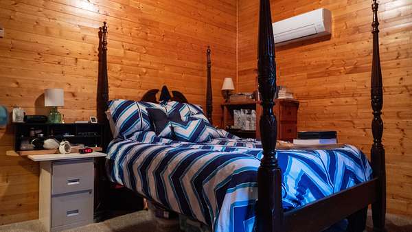 The main cabin features 2 bedrooms and 2 bathrooms with approximately 850 square feet of comfortable living space, perfect for full-time living or hosting guests. The second cabin offers 1 bedroom and 1 bathroom with 540 square feet, ideal for rental income, guest accommodations, or a private studio or office.