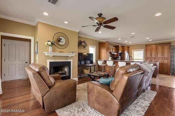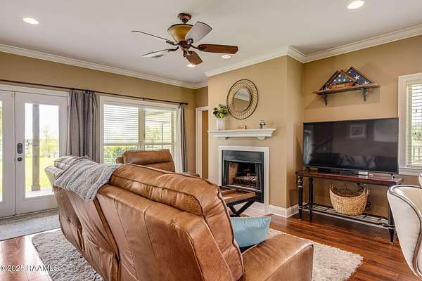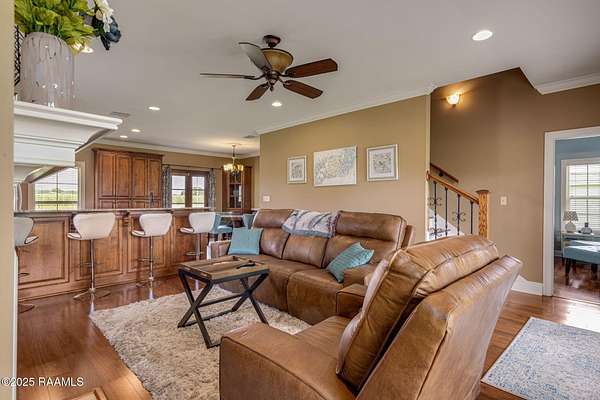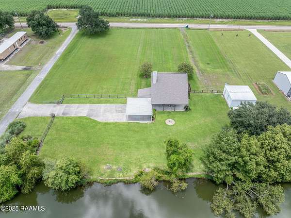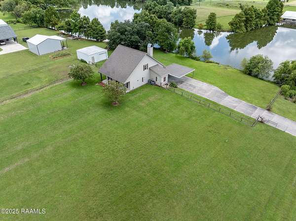 Custom Waterfront Home!! This beautiful custom built Acadian Style home is tucked away on a picturesque 10+ Acre stocked pond minutes from the conveniences of the quaint town of Breaux Bridge. Perfectly located between the Atchafalaya Basin and Lake Martin, this well maintained home is a sportsman's dream come true! Offering an open concept floor plan, this home affords lots of space for family living as well as entertaining! You'll love the Brazilian cherry hardwood floors, vented gas fireplace, and large windows with spectacular views of the pond. The master suite is on the main floor with french doors which offer a view of the pond and open to the covered rear porch. A second floor balcony is perfect for sunbathing, eating breakfast while watching the sun come up over the water, or incredible bird watching as the birds fly home to Lake Martin to roost. The kitchen was designed with a master chef in mind! Custom gourmet kitchen with slab granite countertops, custom cabinetry, under cabinet lighting, upgraded stainless steel appliances and a commercial style gas stove. Master suite located on the bottom floor, offers separate walk-in closets, jetted tub, separate shower, and double sinks with slab granite counter tops. The upstairs includes two large bedrooms each with their own bonus space and plenty of storage. A second floor balcony is perfect for sunbathing, eating breakfast while watching the sun come up over the water, or incredible bird watching as the birds fly home to Lake Martin to roost. The kitchen was designed with a master chef in mind! Custom gourmet kitchen with slab granite countertops, custom cabinetry, under cabinet lighting, upgraded stainless steel appliances and a commercial style gas stove. Master suite located on the bottom floor, offers separate walk-in closets, jetted tub, separate shower, and double sinks in slab granite. If all this wasn't enough there is also a 585 sq. ft. Southern Structures workshop!!