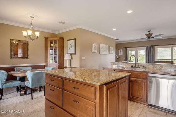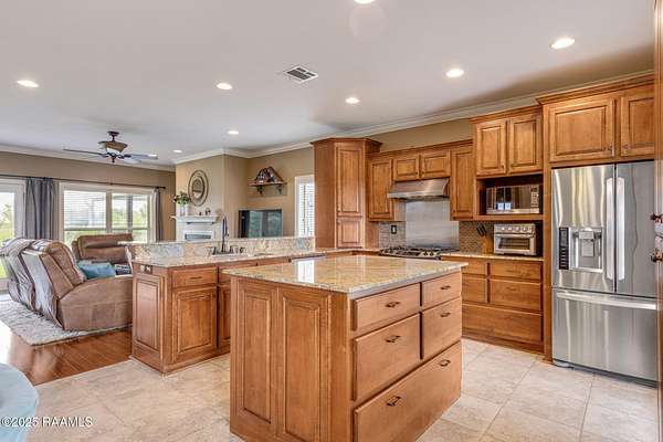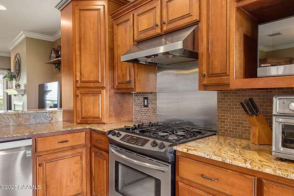 - 9+ ft Ceiling, Attic Access, Bookcases, Built-In Features, Built-Ins, Crown Molding, Double Vanity, Electric Dryer Con, Electric Washer Con, Garden Tub, Gas Stove Con, Granite Counters, High Ceilings, Kitchen Island, Primary Bath, Separate Shower, Soaking Tub, Standalone Tub, Walk-In Closet(s)