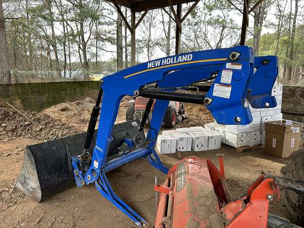 New Holland Workmaster 95 MFWD Tractor with front-end loader - Creek View Windrower - LMC 60 gallon boom sprayer - Land Pride Tiller - AgSpray House Washer