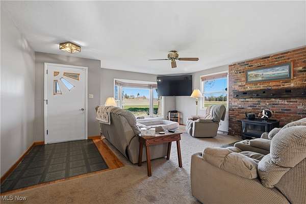 Welcome to country living on a paved road and 5 minutes to stores and amenities. This 3-bedroom, 2-bath ranch home with partially finished basement is just what you have been looking for. The interior has been freshly painted and just needs your finishing touches. Living and dining room combo with a wood burning stove. Vaulted kitchen with breakfast bar and sliders out to the concrete patio. Full basement has a finished room with a pellet stove and a multi-purpose area and laundry/utility room. 2-car attached garage with a circle driveway. Step out to your sprawling 8.49-acre lot featuring 3/4-acre pond stocked with bass and blue gill that was 18' deep when dug. Then there is the outbuilding.... 30 x 40 heated and insulated garage with 6" concrete floor, 12' ceilings and 10' overhead double doors with 220 and an RV outlet. Plus an additional storage shed. Hot water heater 2022, Trane Furnace and central air 2014, new house electric breaker box 2024, house metal roof approx. 2015, seamless gutters 2025. Kitchen appliances approx. 5 years old. Such a beautiful setting to call home. Make your appointment today.