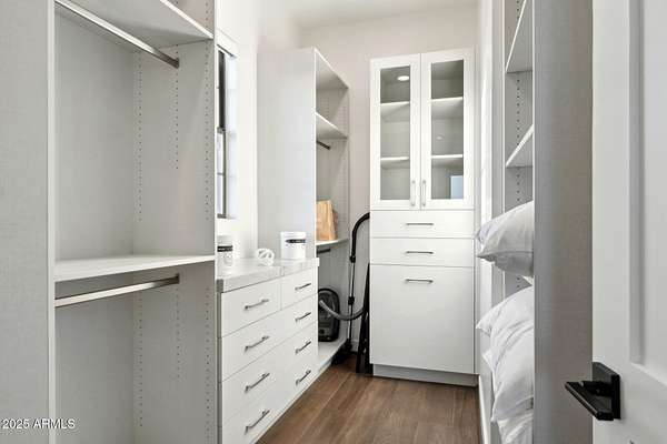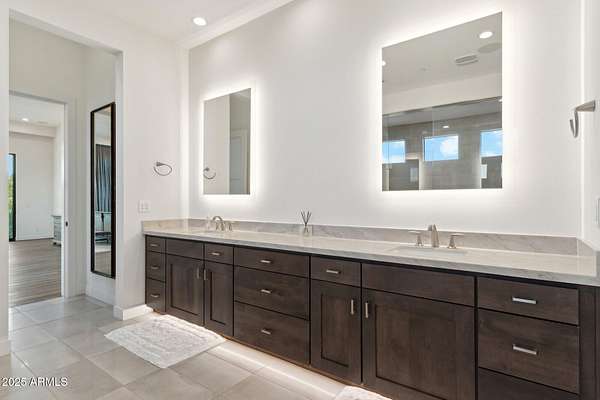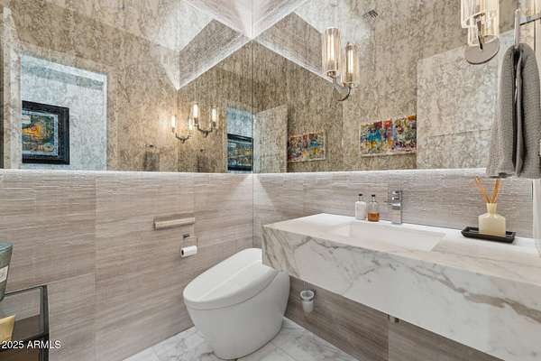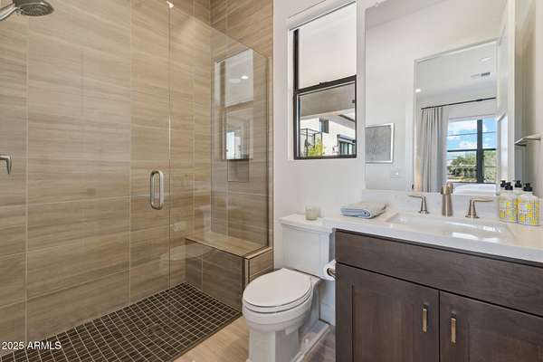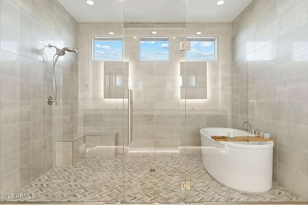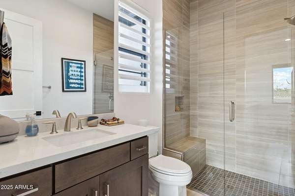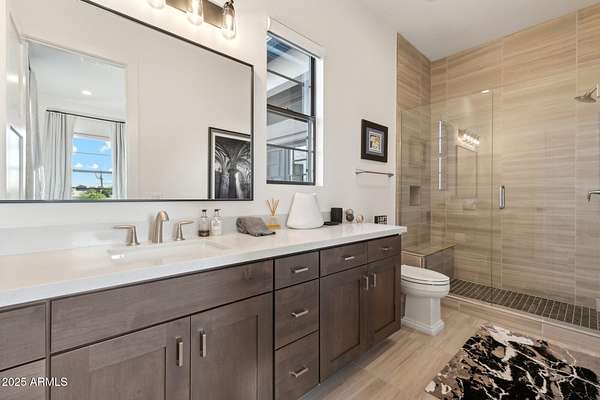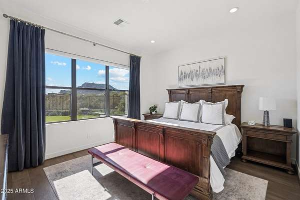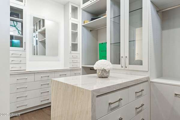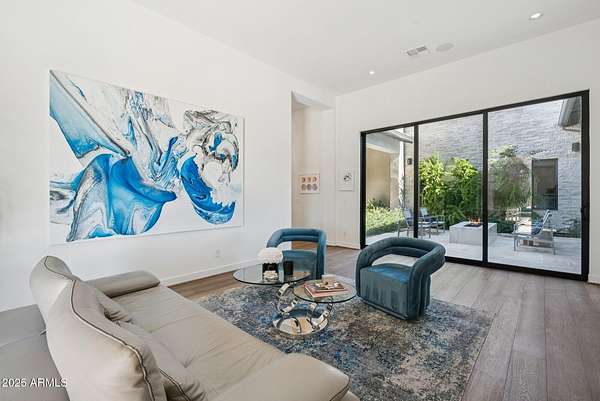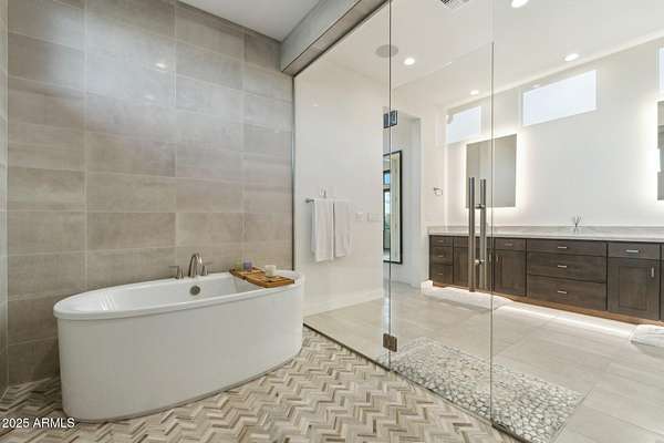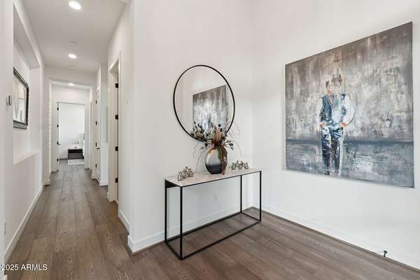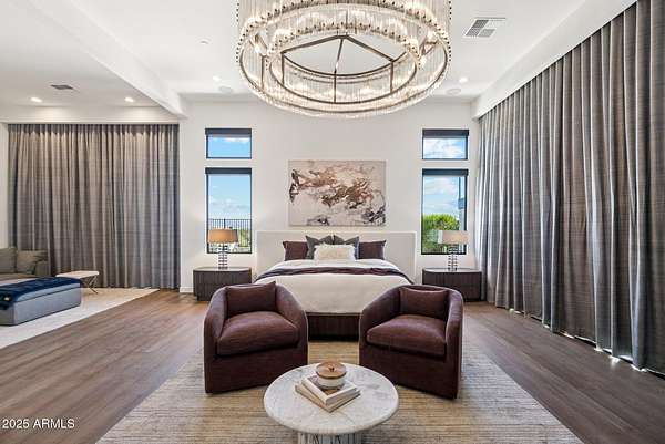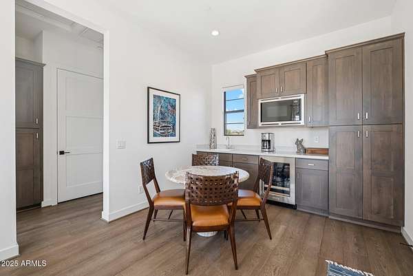 Experience elevated desert living in this newly constructed, sophisticated residence nestled in the heart of North Scottsdale. Showcasing sweeping panoramic mountain views, this exceptional home is designed for seamless indoor-outdoor living and effortless entertaining. The expansive open-concept great room is framed by dramatic walls of glass, flooding the space with natural light and highlighting custom lighting and high-end designer finishes throughout. The chef's kitchen is a true showpiece, featuring premium Wolf appliances, a Sub-Zero refrigerator, an oversized quartz waterfall island, and an additional Bosch refrigerator conveniently located in the garage-perfect for extended stays and entertaining. Step outside to your private resort-style oasis.