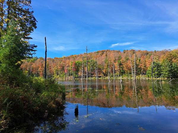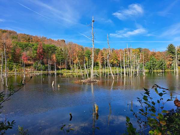 The remainder of the property is mostly forested, with a majority of the forestland enrolled under real Property Tax Law 480a. 480a allows for the reduced tax assessment of qualifying forestland and subsequently lower school and property taxes for the long-term engagement of proper forest management. The current landowner, a professional forester, has been overseeing various forest management strategies on the property. A 2019-2020 timber harvest was undertaken with the goal of not just improving future timber quality, but more importantly, enhancing wildlife habitat. This harvest has led to an increased presence of white-tailed deer, black bear, ruffed grouse, woodcock, and turkey.