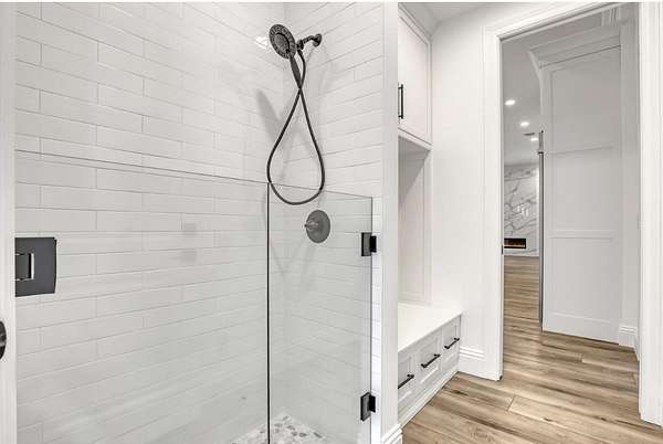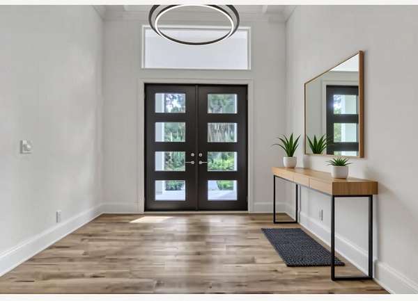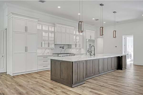 - Built-In Shelves, Closet Cabinets, Custom Mirror, Decorative Fireplace, Fireplace(s), Foyer, French Door, Kitchen Island, Laundry Tub, Pantry, Volume Ceiling, Walk-In Closet