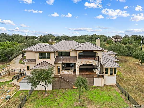 Join us at the Open House this Saturday, December 6, 2025, from 12 to 3:30 PM. Come explore the incredible space in this custom-built 5-bedroom home, offering spacious, elegant living with breathtaking outdoor views and exclusive Guadalupe River access. Designed with everyday comfort in mind, this property perfectly blends style and functionality. Each bedroom boasts a private bathroom, while a main-floor home office provides a peaceful workspace. The master suite includes a cozy den, a large walk-in closet, and a luxurious bathroom, perfect for relaxation. Practical amenities such as a Tesla charger, metal roof, and a three-car garage with extra parking enhance convenience. Entertain effortlessly with an outdoor kitchen under soaring ceilings and enjoy multiple patios, an outdoor fireplace, and expansive 2-acre grounds. River Chase's exceptional amenities include a pool, basketball courts, frisbee golf, walking trails, gym, clubhouse, and veteran's memorial area. This unique hill country residence combines comfort, style and nature.