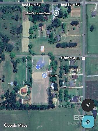 south on HWY. 98 from Fairhope - Left (East) on county rd. 32 - Left (North) onto county rd. 33 - Fieldcrest Lane will be on your left, once on fieldcrest house will be on your left.