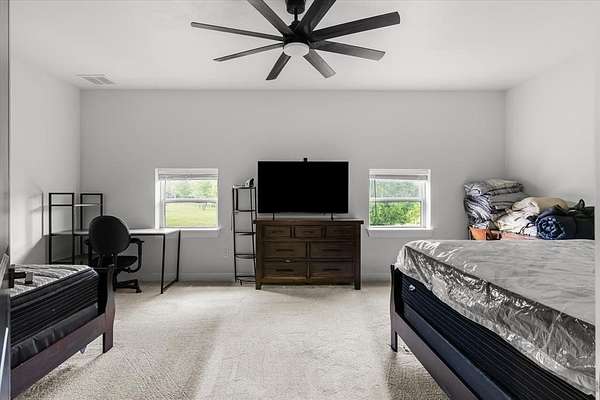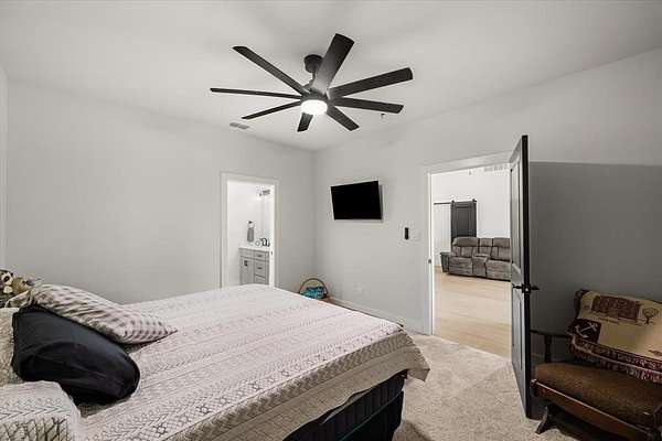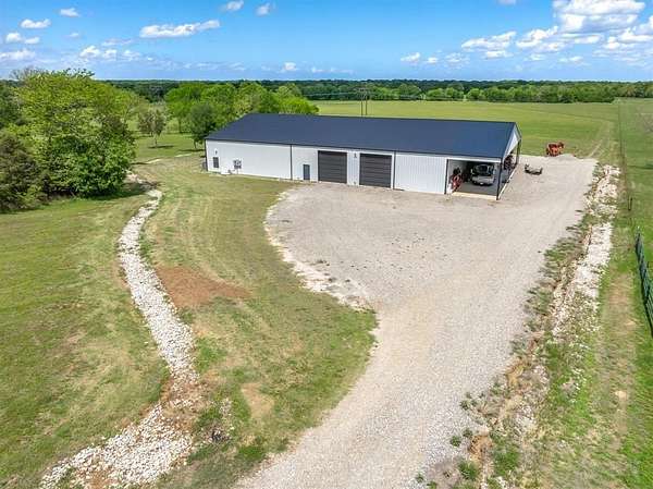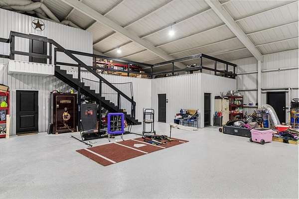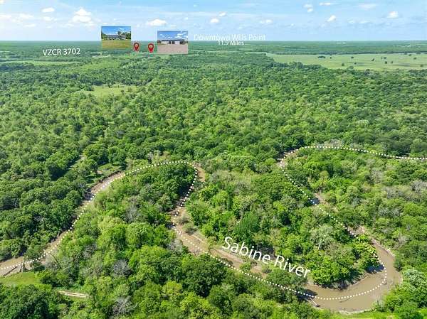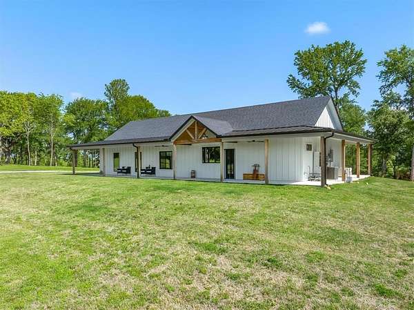 Within 1 hour of Dallas- World-class 408± acre hunting resort The T River Ranch with over 3,000 feet of Sabine River frontage, where historic McBee Creek winds through towering oak forest, & wildlife-rich hardwood bottoms. Fenced on both sides all the way to river & absolutely loaded with wildlife in all forms, this ranch features a spring-fed duck slough off the old river channel, plus strategically placed high-end deer stands & protein feeders that all convey. At the heart of the property is an impressive 12,000± SF barndominium with 3 large bedrooms, open-concept kitchen & living area, laundry room, gun room, & approx. 9,000± SF of closed cell foamed shop space complete with half basketball court, air compressor, & two car lifts, including a drive-on lift. Outside the shop is 2 elec wench & sink cleaning station. Offering two separate private primary suites with ensuite baths & walk-in tiled showers, while the chef’s kitchen showcases high-end Café appliances, porcelain farm sink, quartz countertops, & an oversized island; all furniture & 9500-series TVs in barndo can remain, creating a true turn-key retreat. Step outside to a covered patio overlooking rolling hay fields & majestic oaks, with fiber-optic internet & a cell booster ensuring modern connectivity in a private, end-of-the-road setting. The property is in ag for wildlife & hay. Additional improvements include select camera systems & generators convey. Within walking distance is a 1,500± SF additional 2023 farmhouse style guest house with 2 private bedrooms, 2-bath & 2-car garage, vaulted ceilings, built-ins, quartz counters, soaking tub, & large L-shaped shower. Kitchen windows in guest home open outward to frame a stunning water view of a 2± acre, professionally stocked pond—reported at roughly $40,000 in fish, including bass, bluegill, hand-released trophy bass, and catfish—along with all appliances, two ATVs, 1 tractor to convey, making this an exceptional, ready-to-enjoy East Texas river ranch.