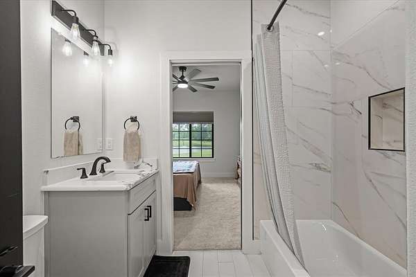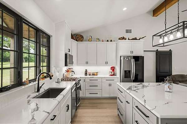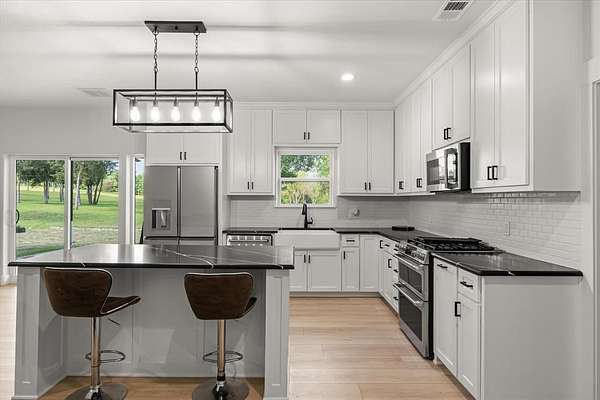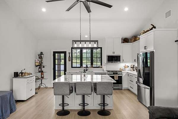 - Decorative Lighting, Double Vanity, Eat-In Kitchen, Kitchen Island, Open Floorplan, Second Primary Bedroom, Walk-In Closet(s)
