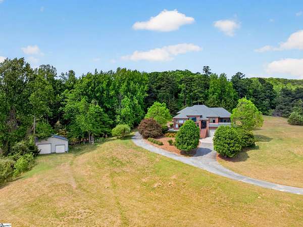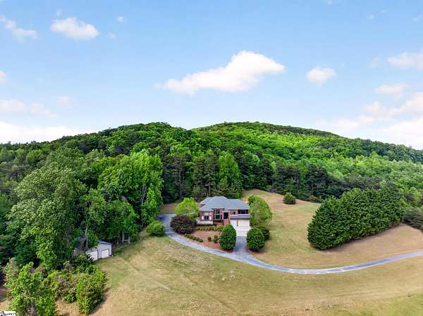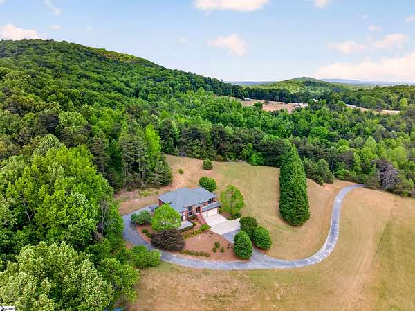 For a showing appointment, please contact Susan Dodds 864-201-8656 or email sdodds@cdanjoyner.com. Welcome to beautiful sunrises and sunsets overlooking Glassy Mountain from your own private 30 +/- acre retreat. The views of Glassy Mountain from the custom built home are breathtaking and if you climb the hill behind the home, you can see all the way to the water tower in Greenville at Pelham and Haywood Roads!! Located just 36 minutes from downtown Greenville, this home and property offer the best of both worlds. Privacy, unrestricted acreage a home with views you will NEVER tire of seeing, a 30'x40' Hoover storage building with electricity and industrial lighting; endless gardening possibilities and of course it has pastures and wooded areas for horses, cattle, goats, sheep, chickens, bee hives or whatever you want! AND just minutes to Easley and Greenville. The home offers an open floor plan with many unique features: one being 25' high ceilings in the living rooms.; solid surface cultured marble showers and bathrooms; 3 HVAC systems ( one for each level); and hardwood pine flooring and a 3 car garage with gracious storage rooms, too. The primary bedroom has a sitting balcony to enjoy your coffee or tea while viewing the face of Glassy Mountain. The history of this property and surrounding land is extensive and dates back to the 1800's. Come see this most unique property and you will fall in love with it's beauty, location and VIEWS!