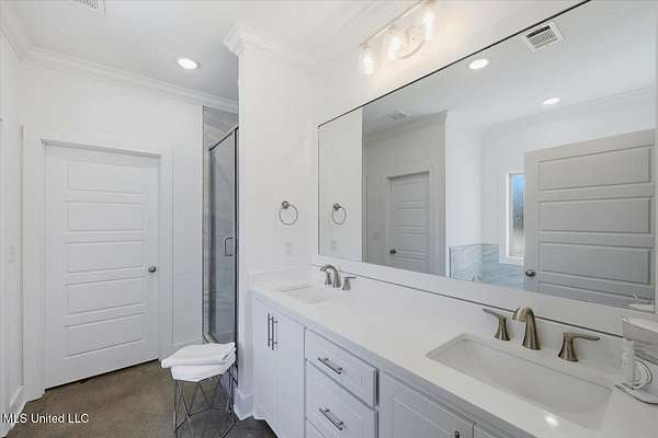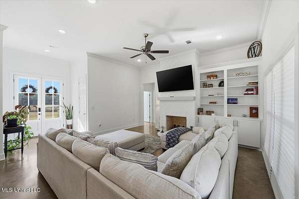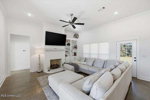 Elegant 3-Bedroom Home on 3 Acres Welcome to this beautifully appointed 3-bedroom, 2-bath home set on just over 3 serene acres. This residence combines modern comfort with thoughtful design. Inside, you'll find a spacious living area highlighted by a cozy fireplace and custom built-ins. The kitchen is a true centerpiece, featuring white quartz countertops, an eat-in breakfast bar, ample cabinetry, and a walk-in pantry. The master suite offers a retreat of its own with double vanities, a custom-tiled walk-in shower, a soaking tub, and a large closet that conveniently connects to the laundry room. On the other side of the home, two generous guest rooms share a well-appointed hall bath with double vanities and quartz countertops. Outdoors, a vaulted-ceiling back porch overlooks the expansive lot, offering a peaceful spot to relax and enjoy nature. The property also includes a 2-car garage with extra storage space. This home blends elegance and functionality-contact your agent today to learn more and schedule your private showing!