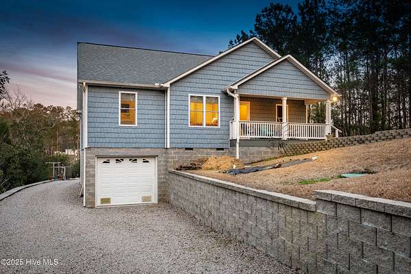 33E from Greenville through Chocowinity, turn left on Old Blounts Creek Road, turn left on Cotton Patch Road, turn left onto Long Point Landing, turn right onto Bay Point Road, and turn right on Bluff Road, house on the left.