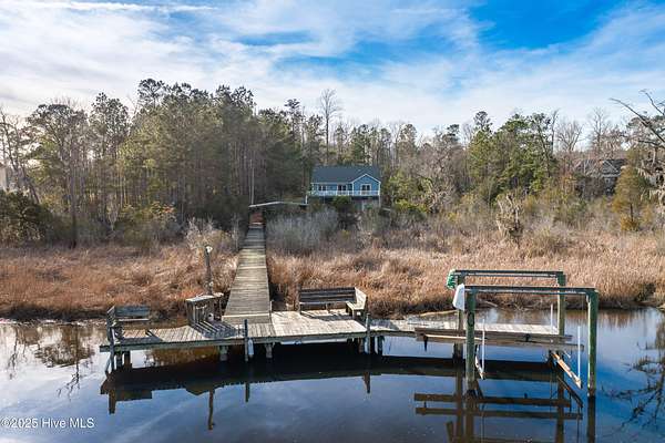 Waterfront Oasis with Private Dock & Bungalow Escape to your own slice of paradise with this stunning 3-bedroom, 2-bathroom waterfront home in Long Point Landing, Chocowinity! Nestled in a cul-de-sac, this property offers breathtaking views, a private pier, boat dock, and boat lift-perfect for boating and fishing enthusiasts. Step inside to an open floor plan that seamlessly connects the living, dining, and kitchen areas, creating a bright and airy space for entertaining. The split-bedroom layout ensures privacy, with a spacious primary suite overlooking the water and opening to the deck. Outdoor living is a dream with a large deck featuring a retractable awning, perfect for relaxing while taking in the water views. Enjoy year-round comfort in the extra-large (20 X 11) screened-in bungalow, ideal for outdoor dining or unwinding in the fresh breeze.