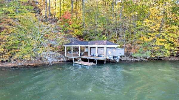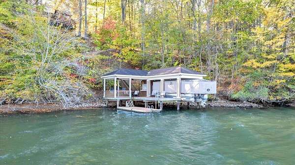 Premier 500' Waterfront Home on Wide Channel-Smith Mountain Lake. Ideal for boating, relaxing, and entertaining year-round. The home offers 3 beautifully finished levels with spacious, well-designed interiors. The great rm has cathedral ceilings w/stone fireplace. The adjacent kitchen is well-equipped. The remodeled primary suite has updated finishes and lake views. Add'l BR's and baths across the levels offer ample accommodation for family and guests. Outdoor spaces are a highlight, with extensive decking overlooking the lake, plus a long patio. Lake access is convenient via the wide concrete cart path, and the included Kubota UTV makes transporting gear easy. At the water's edge are a large floater dock, lifts for a boat and PWC, a cabana, and covered areas for entertaining.