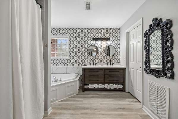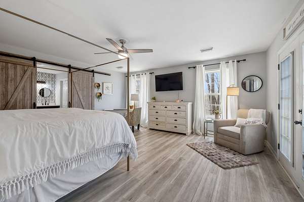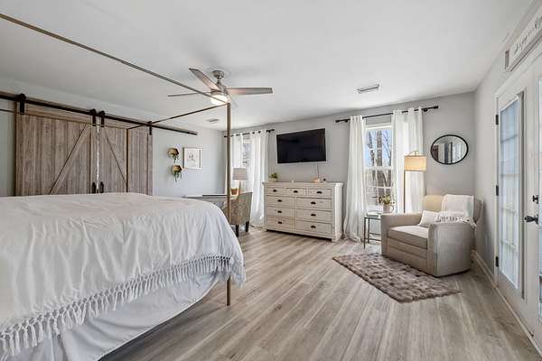 The main level features 2,084 square feet of living space, including 3 bedrooms and 2 bathrooms, along with a spacious 359 square foot bonus/family room. Enjoy direct deck access from the primary suite and a covered back porch overlooking the serene, tree-lined backyard.