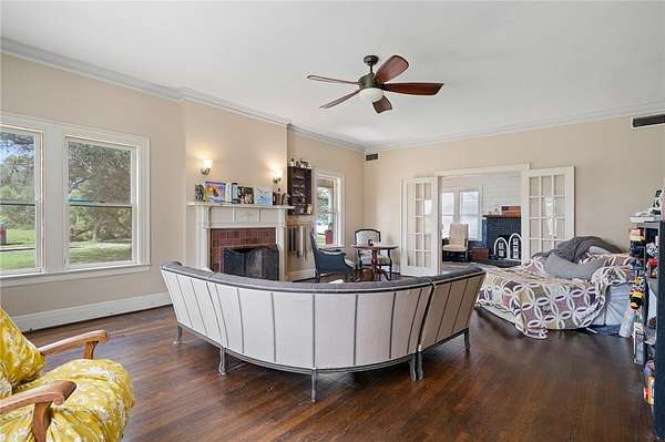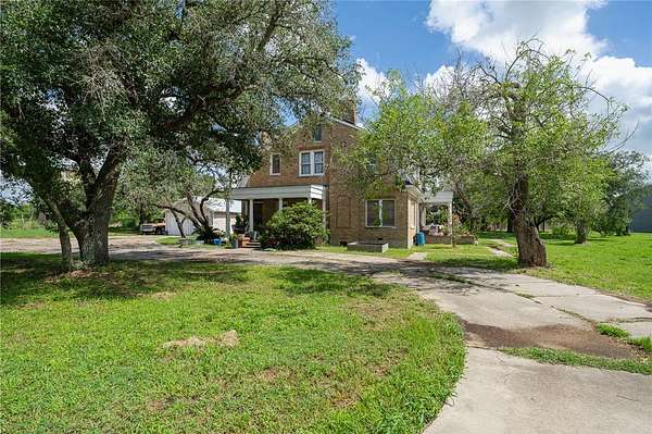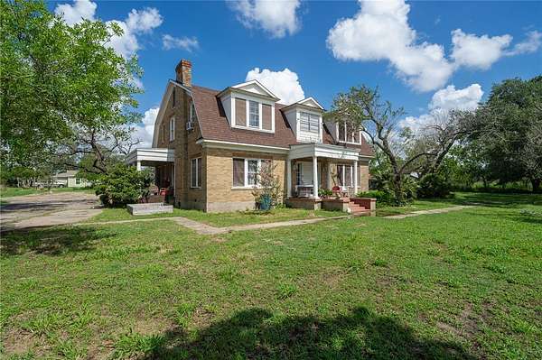 The moment you drive into the circle Driveway of This Dutch Colonial home, built in 1920 and remodeled in 1972 - 2021, you will feel all the charming features of the period. It has an elegant, Front staircase in the foyer, & a back staircase in the Dining room with a charming 1/2 bath tucked in for convenience. The main house boasts 3 fireplaces and 4 massive bedrooms in the main house. House has continuously been loved, restored and updated, but still in a state of some repair. It has a storage house, Ice house, two car detached garage, studio, workshop, small live stock pins with little coops that are powered and have A/C. This property would make an excellent "hobby farm". 1.17 Acres of land sits in the County and 0.890 acres is zoned for commercial use on HWY 77. Recent survey available. Property can be on well or city water. This is a property you need to see. Come see 119 E Houston St in Refugio, TX Today! Drone Photography lines are approximate.