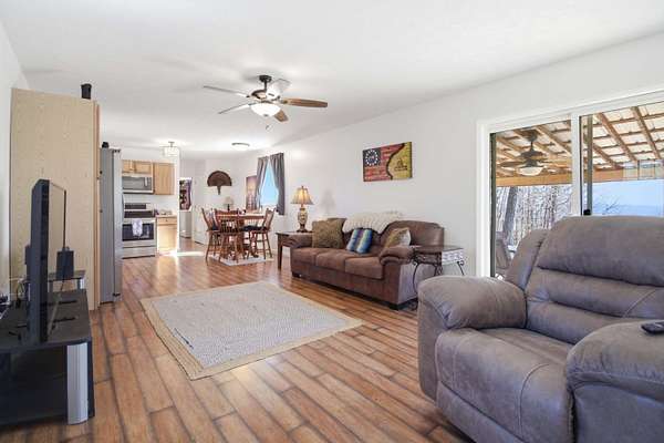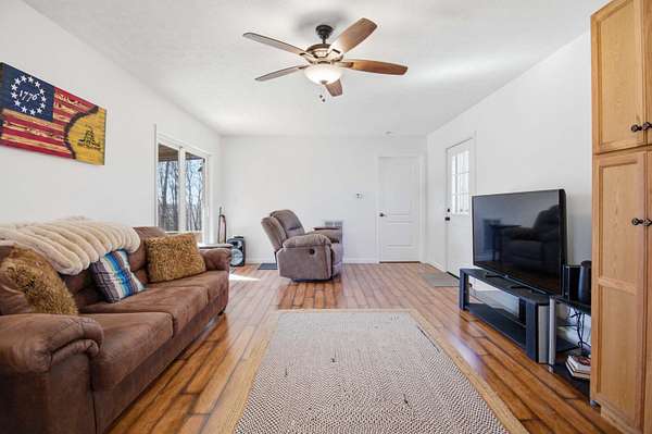 Tons of Privacy - Yet Close to Town! Welcome to your hidden gem! This charming 2-bedroom, 1-bath home offers the perfect blend of peaceful seclusion and convenient access to town. Nestled on 10.44 unrestricted wooded acres, you'll enjoy space, freedom, and breathtaking views right from your own backyard. Inside, the home features laminate wood flooring and a spacious walk-in closet, creating comfort and functionality throughout. Step outside to the covered back porch - the perfect spot to enjoy your morning coffee while soaking in the amazing views and quiet surroundings. The property also includes a 30x40 three-car garage with poured concrete floors (no electric), offering plenty of room for vehicles, equipment, hobbies, or storage. A beautifully designed firepit area makes this property ideal for relaxing evenings under the stars. If you're looking for privacy, space, and scenic views - all while being just minutes from town - this property truly has it all.