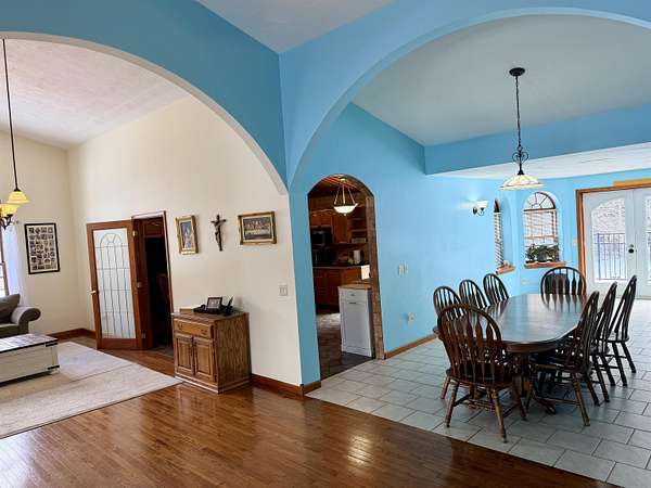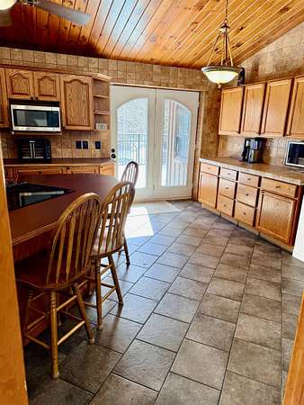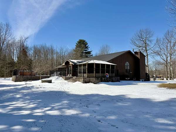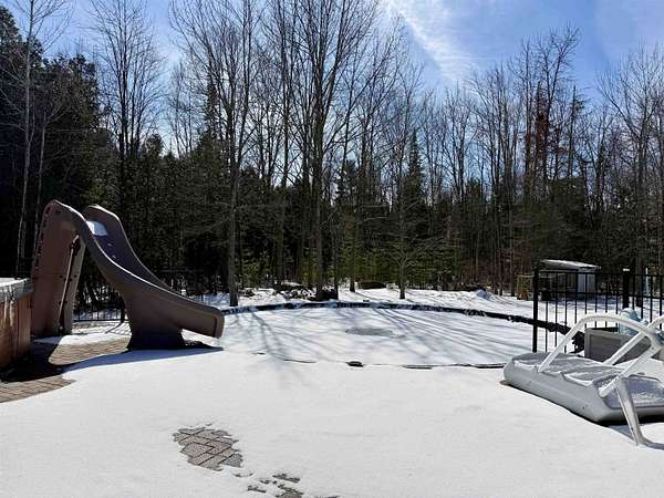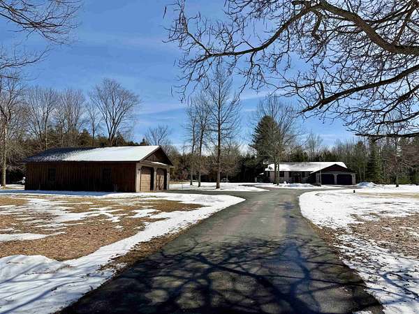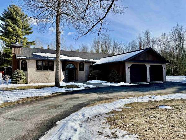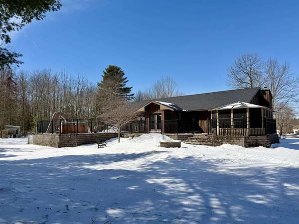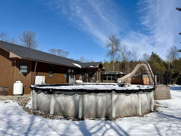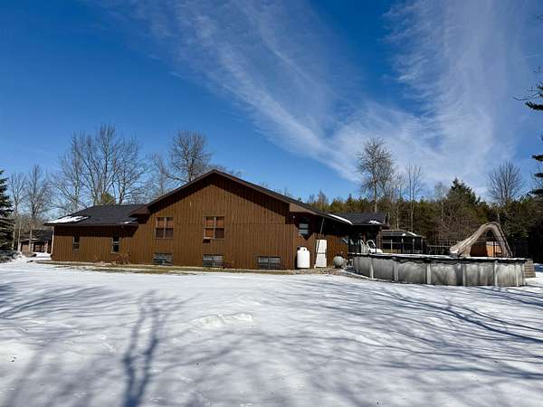 WELCOME TO YOUR NEW OASIS SITUATED ON 30.2 ACRES! This stunning 7-bedroom, 2.5-bath home offers 2,842 sq ft of beautifully designed living space with radiant in floor heat, an above ground pool, a hot tub, a deck, a gazebo, a new roof on the home, attached garage and detached garage in 2025, an attached 2 car garage, a detached 4 car garage, a paved circle driveway, plus a mostly finished basement ~ all situated on 30.2 acres towards the end of a dead-end road. The main level features a spacious kitchen with abundant cabinetry, a center island with seating, and the appliances convey. Elegant rounded archways and a cathedral ceiling add character and charm throughout. Enjoy gatherings in the formal dining room, relax in the cozy sitting area, or unwind in the large living room with a wood-burning fireplace. Also on the main floor, you’ll find the primary suite complete with a walk-in closet and a beautifully appointed private bath, along with three additional bedrooms, a full bathroom, and a convenient laundry room. The finished basement expands your living space with a bar area and pool table (included), three more bedrooms, and an additional room perfect for a home office or guest space. Step outside to your backyard retreat featuring a spacious deck, above-ground pool, hot tub, and gazebo—ideal for entertaining or simply enjoying the lovely surroundings. The expansive property offers endless opportunities for outdoor recreation, including ATV riding, snowmobiling, cross-country skiing, hiking, and more. Additional highlights include radiant in-floor heating, a new roof, an attached two-car garage, a detached four-car garage, and a paved circular driveway. Don’t miss your chance to own this incredible property ~ schedule your private showing today!
