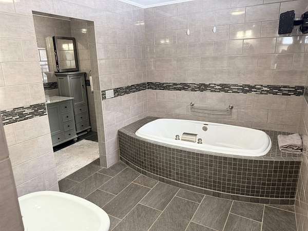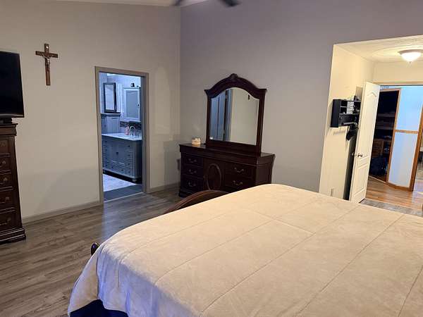 - Breakfast Bar, Cathedral Ceilings, Ceiling Fan(s), Jetted Bathtub, Kitchen Isle, Modern Kitchen, Natural Wood, Open Beam Ceiling, Open Floor Plan, Tub and Separate Shower, Walk-In Closet(s)