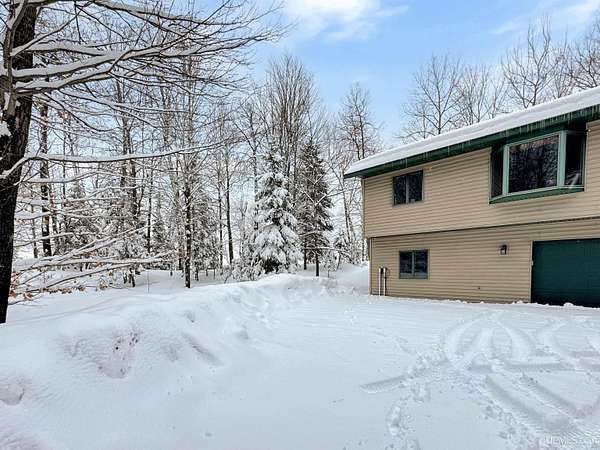 A rare Maggie Lake opportunity! This charming 2-bedroom, 1-bath lake home is nestled on nearly 6 acres with just under 500 feet of pristine frontage, offering unmatched privacy and peaceful lakefront living. A meandering wooded path leads from the home to the shoreline — perfect for morning coffee walks to catch the sunrise, or an evening kayak. Inside, the open-concept layout is filled with warmth and character, featuring beautiful wood accents throughout and a cozy living room fireplace that anchors the space. The main living quarters offer stunning wooded and water views that truly bring the outdoors inside. The garage beneath the home provides convenient access to a functional mudroom, keeping lake life organized year-round. Located just minutes from Young’s Recreational Complex or the Alpha Brewery, you’ll enjoy secluded lake living with access to local amenities. Schedule your private showing today!