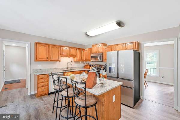 Tucked away on 3 flat, private acres with NO HOA, this beautifully updated home, lovingly maintained by the original owner, delivers over 2,800 sq ft home of living space, flexibility, and a lifestyle rarely found at this price point - plus a rare opportunity for qualified buyers to take advantage of an FHA assumable loan at approximately 2.375%. With today's interest rates, this assumable loan could offer significant monthly savings and increased purchasing power, making this home not only a lifestyle upgrade-but a smart financial move. Inside, the home has been thoughtfully refreshed with new luxury vinyl plank flooring throughout the main level, high-end stain-resistant carpet with plush padding, updated trim, black-painted doors with modern hardware, and fresh designer paint throughout. Recessed lighting, updated fixtures, and contemporary finishes create a warm, elevated feel. The main level features a stunning fully renovated half bath with sleek vanity, new lighting, and custom built-ins. The kitchen showcases new granite countertops and a stylish updated faucet, along with upgraded appliances, a high-end GE Cafe refrigerator, Miele dishwasher, a custom-designed pantry with mop sink, and fresh paint-creating a clean, modern, and functional space. Offering 3 bedrooms plus a large bonus room/potential 4th bedroom, the home provides excellent flexibility for a home office, guest space, gym, or recreation area. The attached garage has been converted into a spacious additional living room, adding valuable square footage and functionality. Upstairs, the bathrooms have been refreshed with new vanities, mirrors, and updated lighting, providing a clean, modern feel and added appeal for today's buyers. Major system improvements include: New dual-zone HVAC system (2024 and 2026), including updated lower-level system with propane backup and new upper-level HVAC Replacement windows Insulated vinyl siding New gutters Updated exterior doors 80-gallon water heater Updated toilets throughout Outdoor Living is Exceptional-The expansive 55-foot deck is designed for entertaining and features a 14x16 aluminum pergola with gutters, wind-resistant screens, and a decorative gas fireplace. The professionally installed fenced rear yard includes a 10-foot gate for equipment access and offers extensive usable land beyond. Additional exterior highlights: Large detached garage with workshop space Run-in shed Separate barn Multiple storage buildings Ample parking and open, usable acreage ** With privacy, storage, flexibility, and significant updates already completed, this property offers a rare opportunity to enjoy acreage living without HOA restrictions - all while remaining within reach of everyday conveniences. Low-rate financing. Private acreage. Exceptional opportunity!