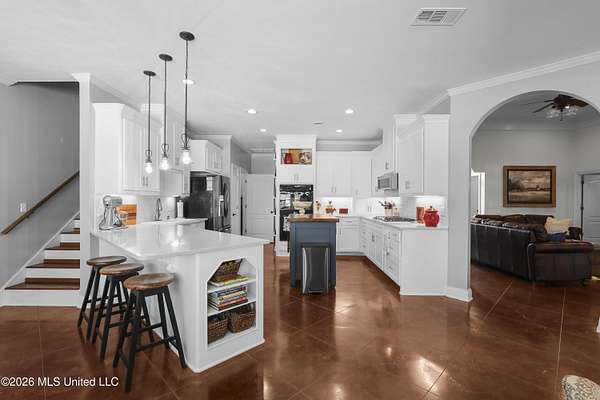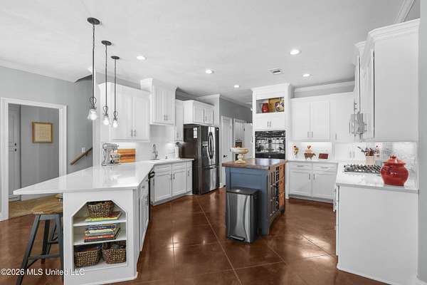 This stunning 5-bedroom, 3-bath Northaven home sits on approximately 2 +/- acres and features an in-ground pool, a shop, and close proximity to Clinton and Flora. Step through a beautiful brick archway into a welcoming foyer, formal dining room, and living room, all accented with elegant archways throughout. The gorgeous kitchen has been recently updated with stunning countertops, double ovens, a gas cooktop, an island, a breakfast bar, and an adjoining keeping room--all with pool views. The split floor plan offers a primary suite opening to outdoor living, guest rooms on separate wings, and a huge bonus room upstairs. Outside, a stunning covered patio and outdoor kitchen overlook the pool with a privacy fence. Backing up to farmland, this home feels tucked away and private, yet it's just minutes from all that Jackson has to offer. More photos coming 4/1/2026.