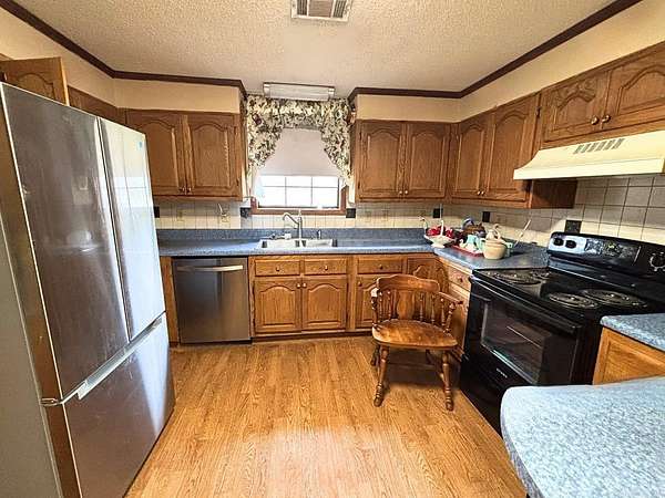 Charming 2BR/1BA home on 4.34 acres in Harmony Grove School district! This inviting 2-bedroom, 1-bath siding home offers comfort, space, and versatility. Enjoy relaxing on the nice front porch or hosting cookouts on the covered side porch—perfect for outdoor entertaining. Inside, the living/dining room combo sits at the front of the home and flows into a well-equipped kitchen featuring good cabinet space, a newer range and dishwasher, and a refrigerator. The pantry is conveniently located in the laundry room. A second living area at the back of the home provides extra space ideal for family gatherings, a game room, or flex space. Outside features include a detached garage/workshop with built-in workbenches along the back and side, insulated walls and ceiling, and a new garage door opener installed in 2025. A smaller storage building is negotiable. The bonus is the 2.3-acre tract across the street that conveys with the property—perfect for an additional home site, garden, rental potential, or future plans. All situated on 4.34 acres total. SELLING AS IS, WHERE IS.