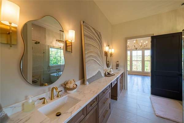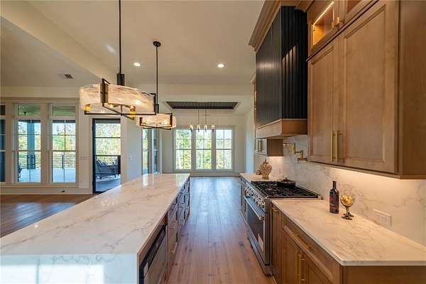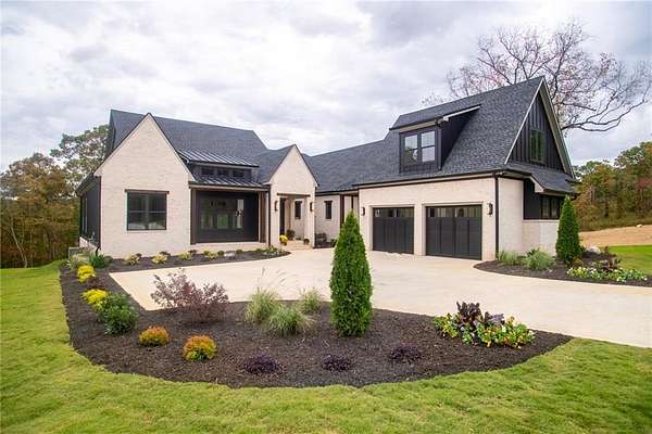 Just 25 minutes from Cartersville and 25 minutes from Rome, nestled in the quiet of Taylorsville's countryside, something extraordinary was born - a home that doesn't just stand out, it stands for something. Crafted by masterful hands and brought to life through soulful design, this brand-new modern European luxury home is a study in harmony - where craftsmanship meets artistry, and modern luxury honors timeless design. From the moment you arrive on this generous 2.35 acre lot, the home's whitewashed brick, black board-and-batten siding, and natural stone accents set a tone of refined elegance and enduring beauty. The inviting front courtyard and modern metal French doors open into a world where light, space, and thoughtful design work in perfect rhythm. Inside, you'll find vaulted ceilings, tall interior doors, and designer lighting that give every room its own quiet sophistication. With 5 beautifully finished bedrooms - including a versatile office or guest suite - and 4.5 stunning bathrooms, every inch of this home was curated for the way life is meant to be lived. At the center, a floor-to-ceiling stone fireplace grounds the open-concept living space - warm, elegant, and inviting. The kitchen is pure artistry - a statement-making waterfall-edge quartz island, full-height quartz backsplash, black-and-gold fixtures, premium Thor kitchen appliances and custom wood cabinetry with a hidden walk-in pantry designed for seamless function and flow. Even the laundry room reflects elevated living, with quartz counters, built-in cabinetry, and plenty of natural light. Upstairs, a bonus suite with private bath offers space for guests, work, or recreation. The 2,800 square foot unfinished basement includes a built-in safe room and is ready for future expansion. In the garage, you'll find ceiling-height doors and whisper-quiet side-mounted motors - a nod to the builder's commitment to both form and function. Step outside to the covered back porch, finished in Trex decking and tongue-and-groove wood ceilings, where peaceful wooded views invite rest and reflection. With two outdoor stone fireplaces, this is a space meant for gathering - for slow mornings, cozy evenings, and moments that matter. With more features than can be listed, be sure to view the special features list in the photos.
