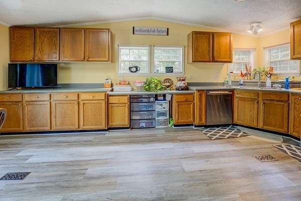 Est $1,817/moWaterfront retreat on Murder Creek with over 10 ft. water depth off the dock. The falls are a short boat ride one way and Lake Sinclair in the opposite direction makes for the perfect blend of peaceful living and outdoor adventure. The charming 3 bedroom 2 bath manufactured home sits on 2.5 acres offering plenty of privacy. The spacious living and dining room are ideal for entertaining and the large eat-in kitchen is perfect for family gatherings. The home offers a split bedroom floorplan and a very large utility/laundry room. Outdoors you will find a beautiful stacked stone patio with steps leading down to the deep water which is perfect for swimming, boating, kayaking and fishing. Call to see this beauty today.