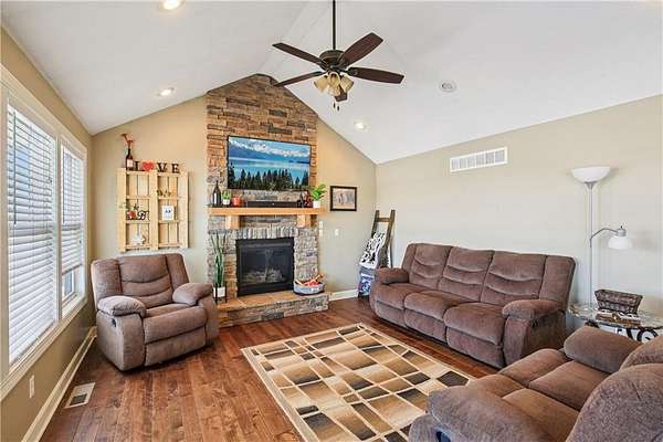 Welcome to peaceful country living with modern comfort at 119 SW 1521st Rd in Kingsville, MO. This 3-bedroom, 3 bath single-family home sits on 4 beautiful acres in Johnson County, offering the bonus of lower property taxes and room to live the lifestyle you want. Built in 2015, the home features 1,335 sq ft on the main level plus 850 sq ft of finished basement space, perfect for a family room, home office, or guest area. The main level showcases hardwood floors throughout, gorgeous custom cabinetry, granite countertops, and a cozy fireplace in the great room-ideal for everyday living or entertaining. Outside, the property is fully fenced for livestock, with room for goats, cattle, or horses, and includes two outbuildings suitable for chickens, mules, or equipment. Enjoy the best of outdoor recreation with Holden Lake just minutes away, offering boating, fishing, and swimming. This rare combination of acreage, newer construction, and recreational access makes this home perfect for hobby farmers, outdoor enthusiasts, or anyone looking to escape the city without sacrificing convenience. All of this for $430,000-don't miss this opportunity to own your slice of Missouri countryside.