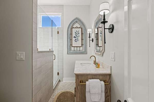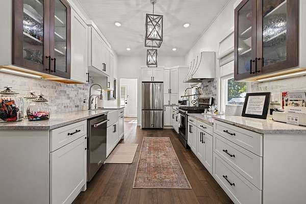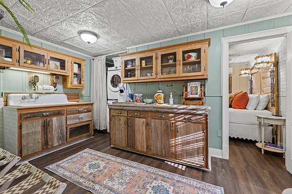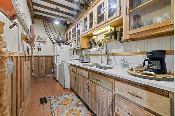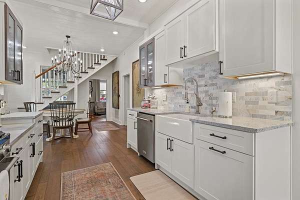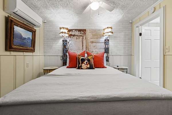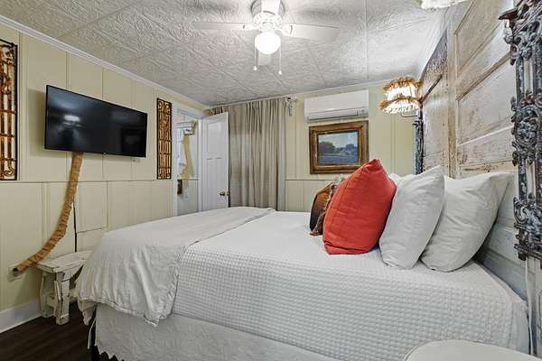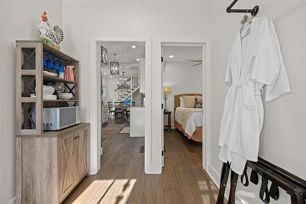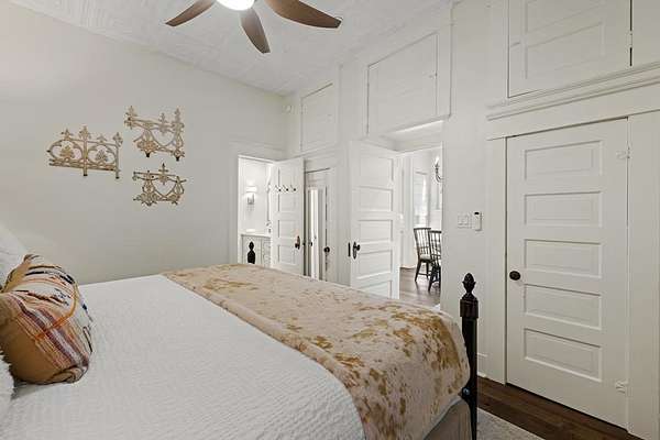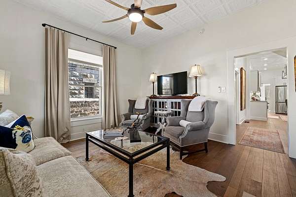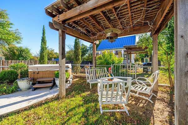 Perfectly nestled in Fredericksburg's Historic District with 2 STR Permits! Located in the heart of Fredericksburg's Historic District and just a short stroll from Main Street, this exceptional multi-home property seamlessly blends historic charm with modern comfort. Following a complete renovation of the front home (2023-2025) and updates to the back home, this turnkey retreat is currently used as a B&B short-term-rental. If you're wanting a place of your own, you can use one home for personal use and the other for guests. The possibilities are endless. The front home features 3 bedrooms, 3 gorgeous bathrooms with frameless glass showers, a cozy sitting room, dining area with unique chandelier, gas fireplace, and a beautifully well-equipped kitchen with gas cooktop. The back guest home offers a fun antique filled 2 bedrooms, 2.5 bathrooms, two inviting sitting rooms with TVs, a full kitchen, and an additional kitchenette, perfect for gatherings or extended stays. Outdoor spaces include a spacious covered porch, BBQ pit, hot tub, and comfortable sitting area, ideal for relaxing and entertaining just minutes from popular restaurants, shopping, galleries, tasting rooms, and museums. Blending Fredericksburg's rich German heritage with thoughtful updates throughout, this property stands out as a premier offering in one of the most sought-after locations in town. Property has 2 permits and rated 5Star on both VRBO and AirBnB. Sold turnkey, excluding a few select personal items.