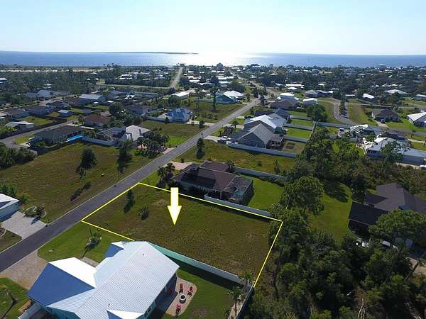 In St. Joe Beach, turn off Hwy 98 onto Canal Street. Go all the way to the end, cross over into Magnolia Bluff Subdivision. Lot is on left, look for sign.