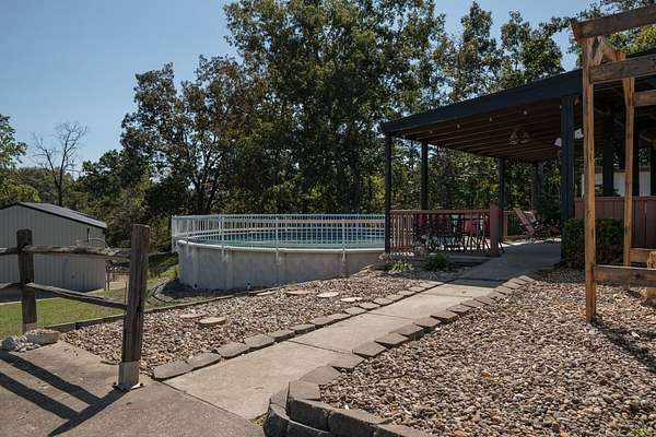 - Covered Porch, Garden Area, Gutters & Downspouts, Out Building, Pole Barn/Building, Private Swimming Pool, Storage Shed, Work Shop