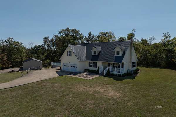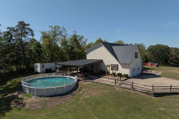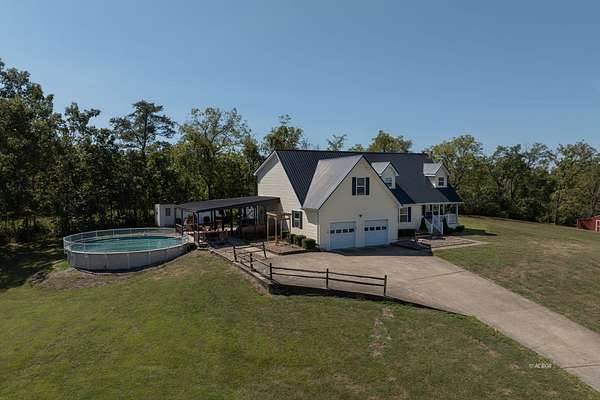 Welcome to your dream home, sitting on nearly 3 acres in a peaceful country setting! This spacious 4-bedroom, 2-bathroom, two-story Cape Cod has it all. The home boasts new wood flooring on the main floor, where you'll also find the primary bedroom with en suite bathroom, featuring a separate shower and soaking tub. Entertain effortlessly with a fully equipped outdoor kitchen for al fresco dining, and dive into fun with your own above-ground pool for warm summer days. A bonus/game room offers endless opportunities for entertainment and leisure. The property includes charming additions such as a chicken coop for fresh eggs and a more sustainable lifestyle, while a large 30x60 metal pole building and additional outbuilding provide ample storage and workspace for hobbies, projects, or a home-based business. The partial basement offers additional storage and has a woodburning stove for supplemental heat. This beauty won't last long! Schedule a showing today!