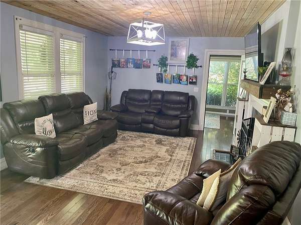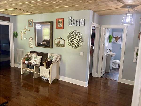 Charming and completely updated farmhouse offering the perfect blend of character and modern comfort! This 3-bedroom, 2-bath home sits on TWO acres and features a large open floor plan including a cozy living room with a fireplace and gas logs, a bright sunroom for year-round enjoyment, and a spacious kitchen and laundry room where all appliances will pass with the sale. The home includes a partial basement with a workshop, ideal for hobbies or extra storage. Outdoors, you'll find a large deck-partially covered for relaxing in any weather-along with multiple carports for plenty of parking. The driveway circles the house providing two property entrances. If you've been looking for a move-in ready home with country charm and space to spread out, this one checks all the boxes!